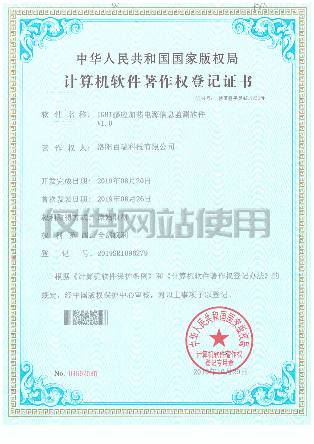計算機軟件著作權登記證書1
